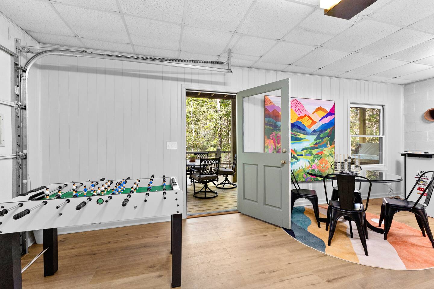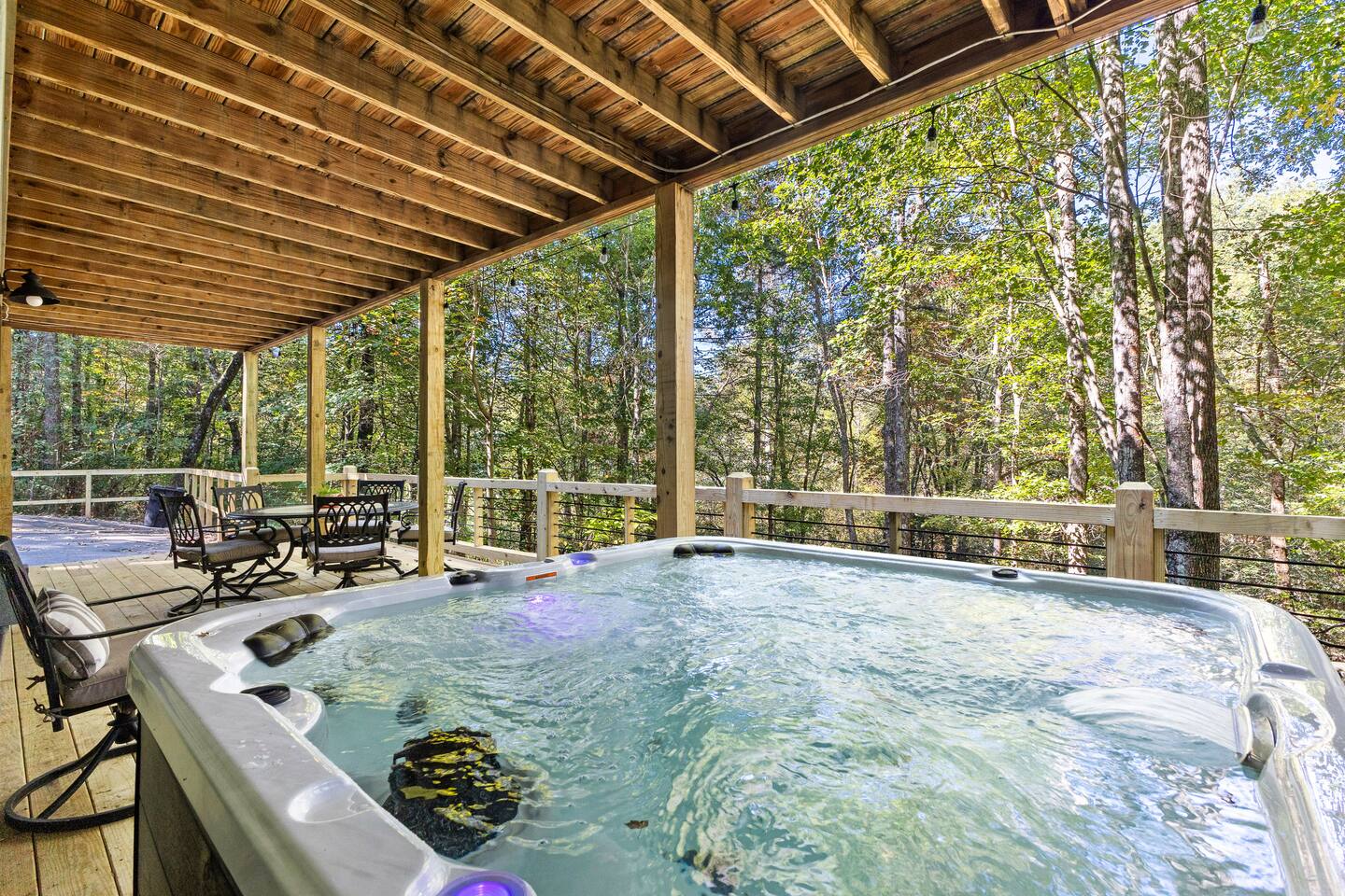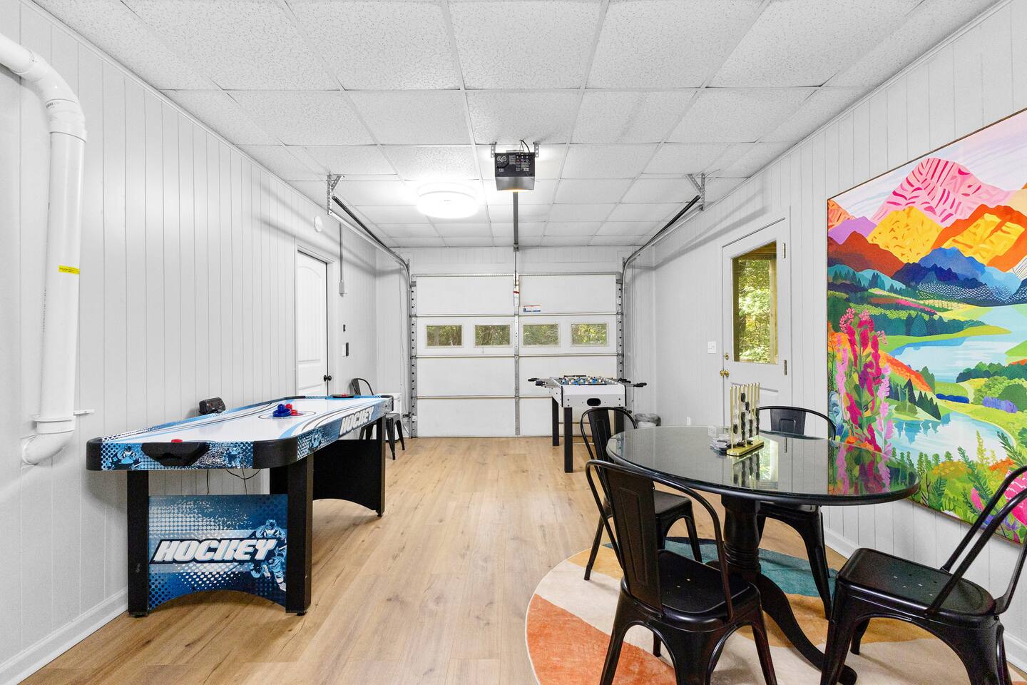 ✔ Cabin sits on 1.5 acres with Kyle creek (an off-shoot of the Toccoa) running along the expansive backyard ✔ Hot tub, game room with arcades, and firepit are a few of the amenities ✔ Bedrooms have well-rated mattresses/pads, ceiling fans, and sound machines ✔ High speed wifi ✔ Smart Roku TVs in living room, primary bedroom, and basement bedroom. Bring your own log-ins! ✔ Well appointed kitchen with stainless steel appliances, trash compactor, air fryer, coffee maker, blender, and toaster. ✔ Highchair, pack n play, sippy cups, and a few toys for little ones
