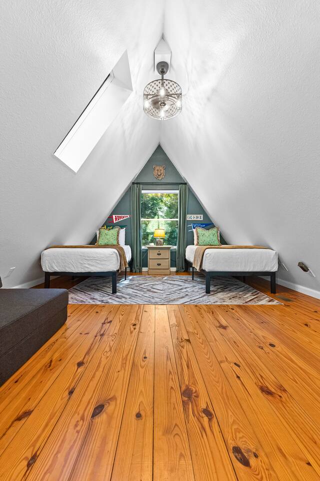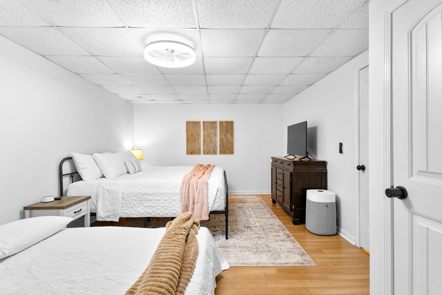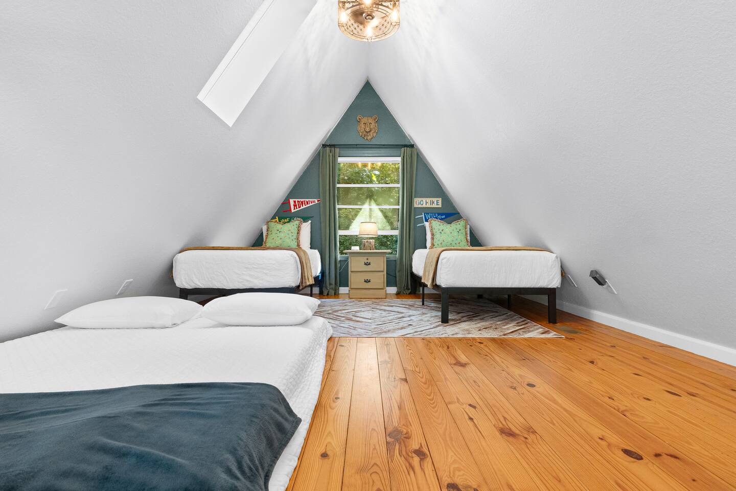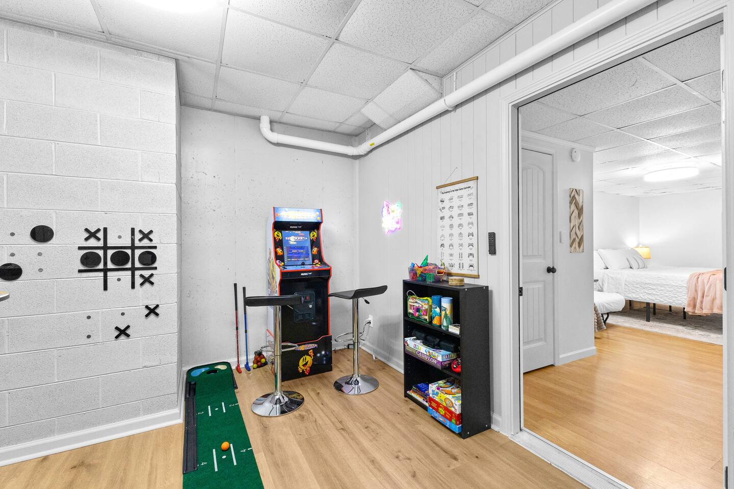 ✔ Cabin sits on 1.5 acres with Kyle creek (an off-shoot of the Toccoa) running along the expansive backyard ✔ Hot tub, game room with arcades, and firepit are a few of the amenities ✔ Bedrooms have well-rated mattresses/pads, ceiling fans, and sound machines ✔ High speed wifi ✔ Smart Roku TVs in living room, primary bedroom, and basement bedroom. Bring your own log-ins! ✔ Well appointed kitchen with stainless steel appliances, trash compactor, air fryer, coffee maker, blender, and toaster. ✔ Highchair, pack n play, sippy cups, and a few toys for little ones