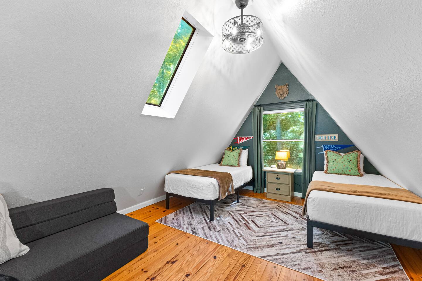 Welcome to The Azalea A-Frame, your creek side retreat with hot tub, game room and king beds. Private, but close to the best of Blue Ridge! ✔ 3 Sleeping areas - 2 bedrooms w/ kings, loft w/ 2 twins, pullout beds to spread out, & 2 bathrooms ✔ Game room w/ arcades, foosball, air hockey, poker/board games ✔ Firepit by creek, hot tub, & rocking chairs on back porch ✔ Mercier Orchard-6 miles, dwntwn Blue Ridge-8 miles, McCaysville/TN line-3.8 miles, Lake Blue Ridge-11 miles, Harrah’s Casino-31